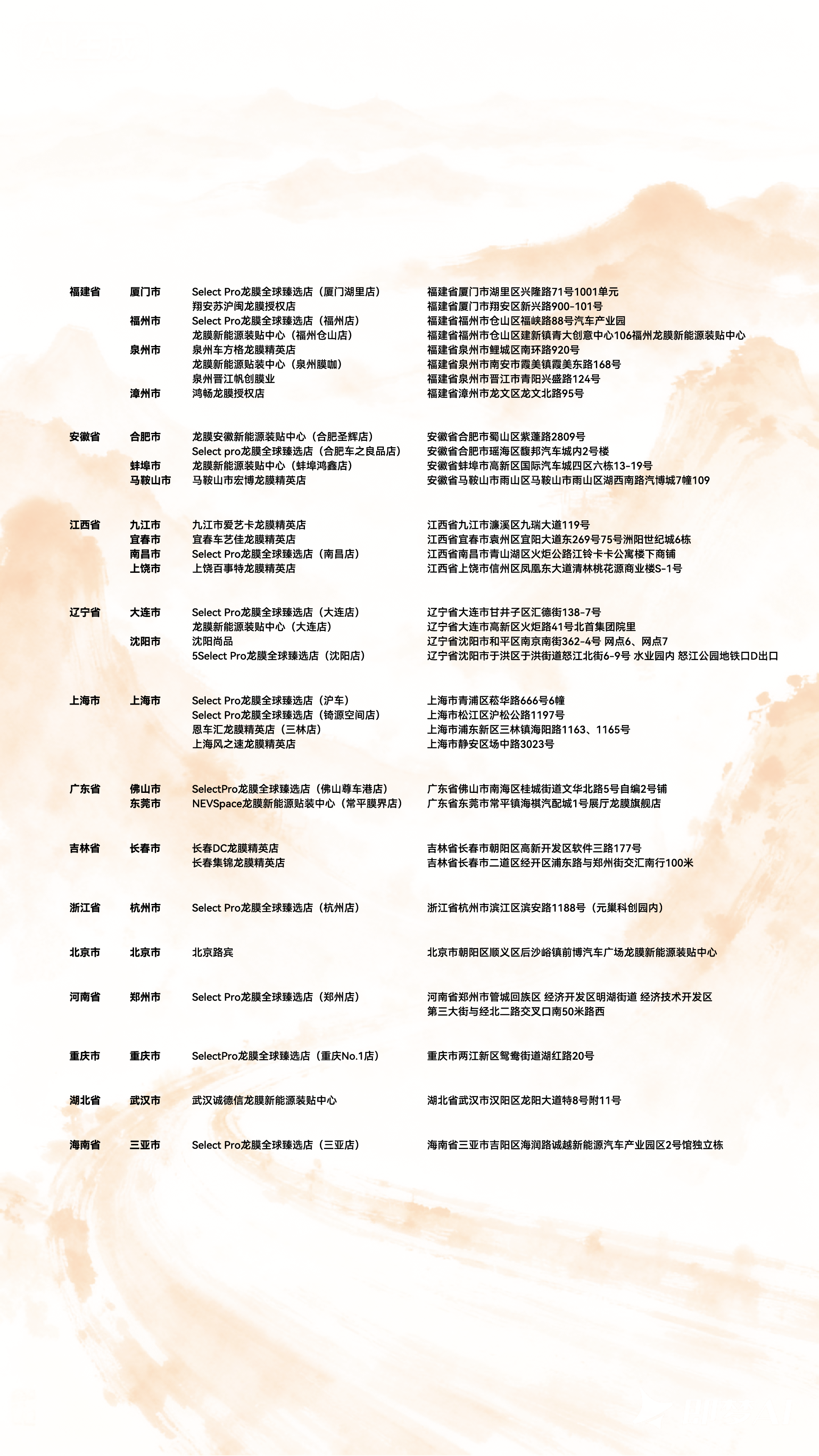 所属省份 城市/地区 授权门店名称 详细地址